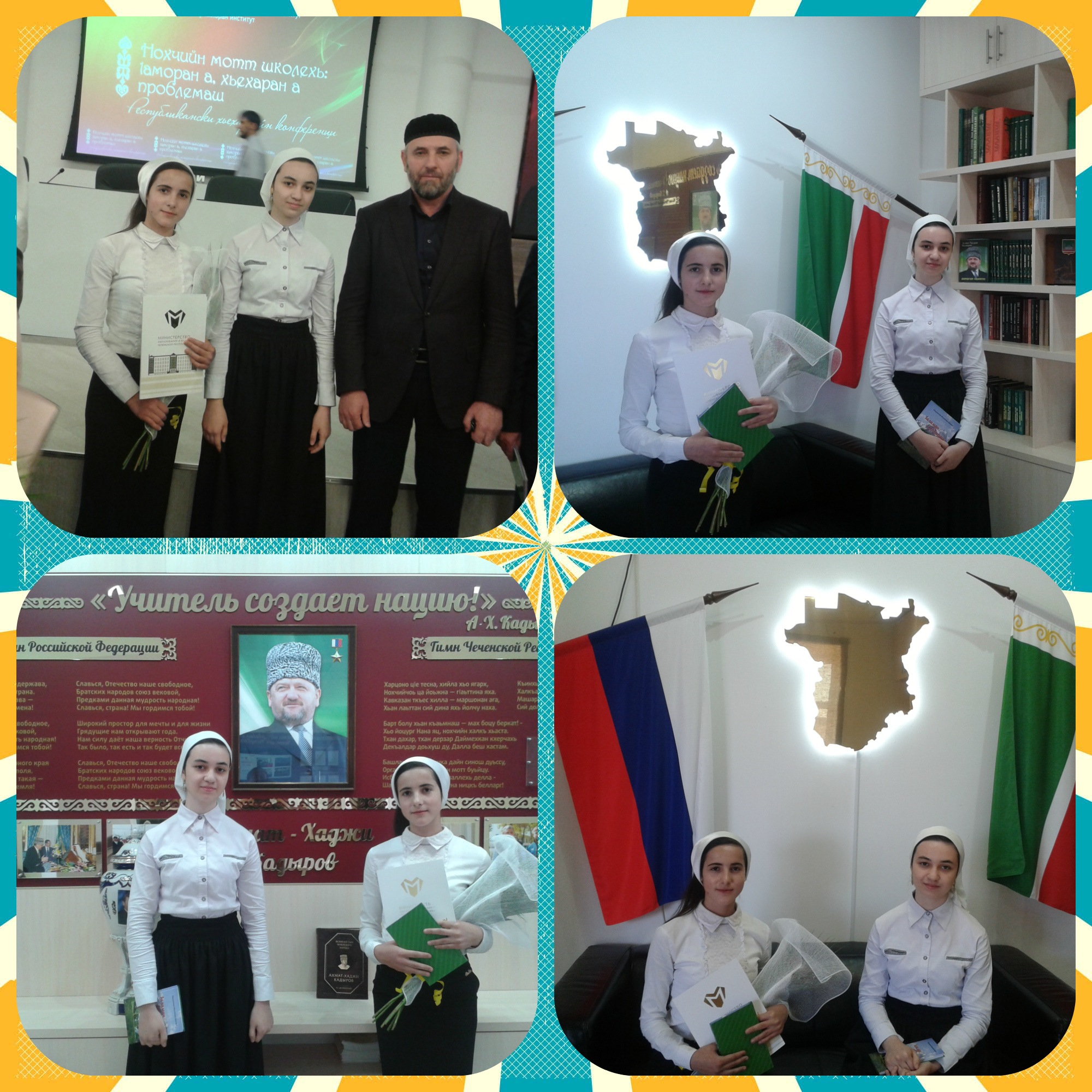21.04.2016Первое место на Республиканской олимпиаде по чеченскому языку заняла наша ученица 10 класса Мидиева Седа. Первое место в Республиканском конкурсе на лучшее сочинение по чеченскому языку заняла наша ученица 9 класса Успахаджиева Хеди.