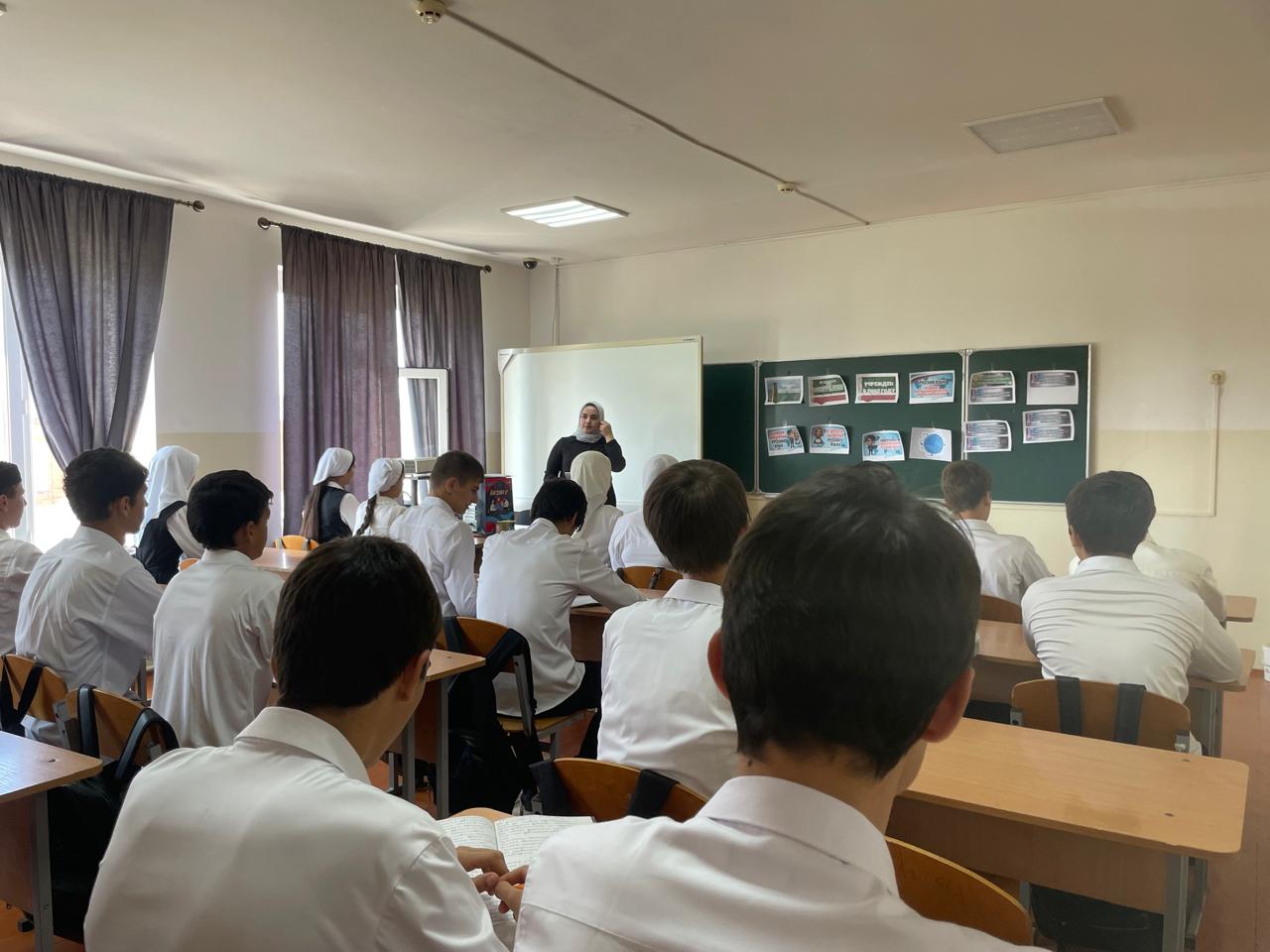 В МБОУ "Комсомольская СШ"провели совместно с отделом в Гудермесском районе УФСБ России по Чеченской Республике мероприятия, приуроченные ко Дню солидарности.