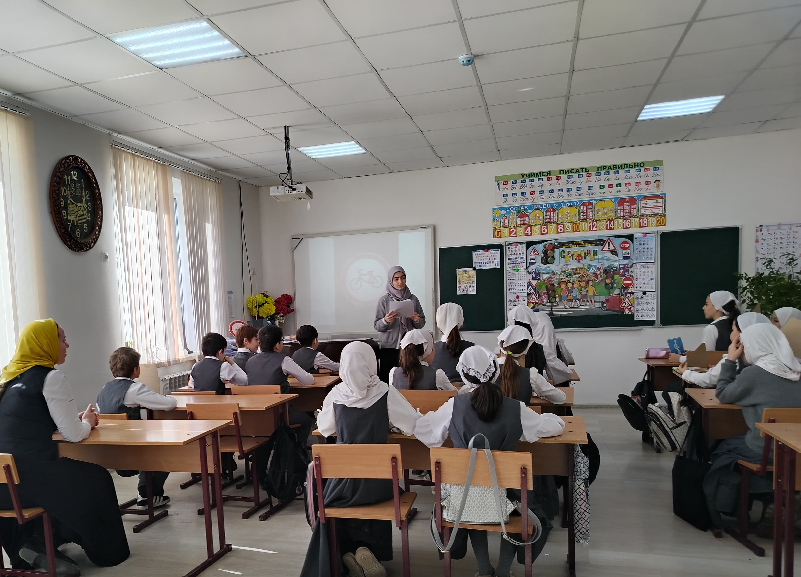 Классные часы были направлены на формирование у обучающихся базовых знаний по ПДД и закрепление уже имеющихся знаний. Один из классных часов посетил советник директора по воспитанию и взаимодействию с детскими общественными объединениями Шахбиевой З.О-Х. В ходе классного часа, обучающиеся начальной школы приняли участие в викторинах на знание ПДД, а обучающиеся 5-11 классов, закрепили свои знания, через интеллектуальную игру. #МесяцБезопасности2026 #ЮныеИнспекторыДвижения